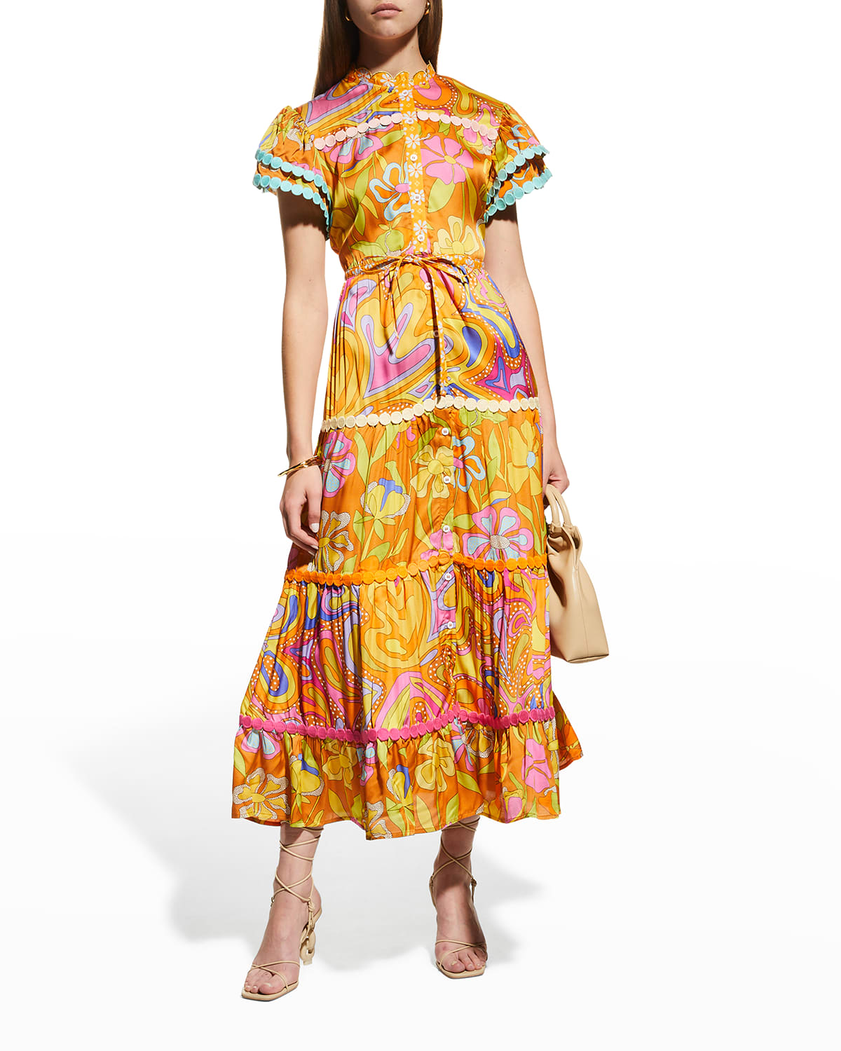 Celiab Olav Floral Scalloped Tiered Midi Dress In Multi Modesens